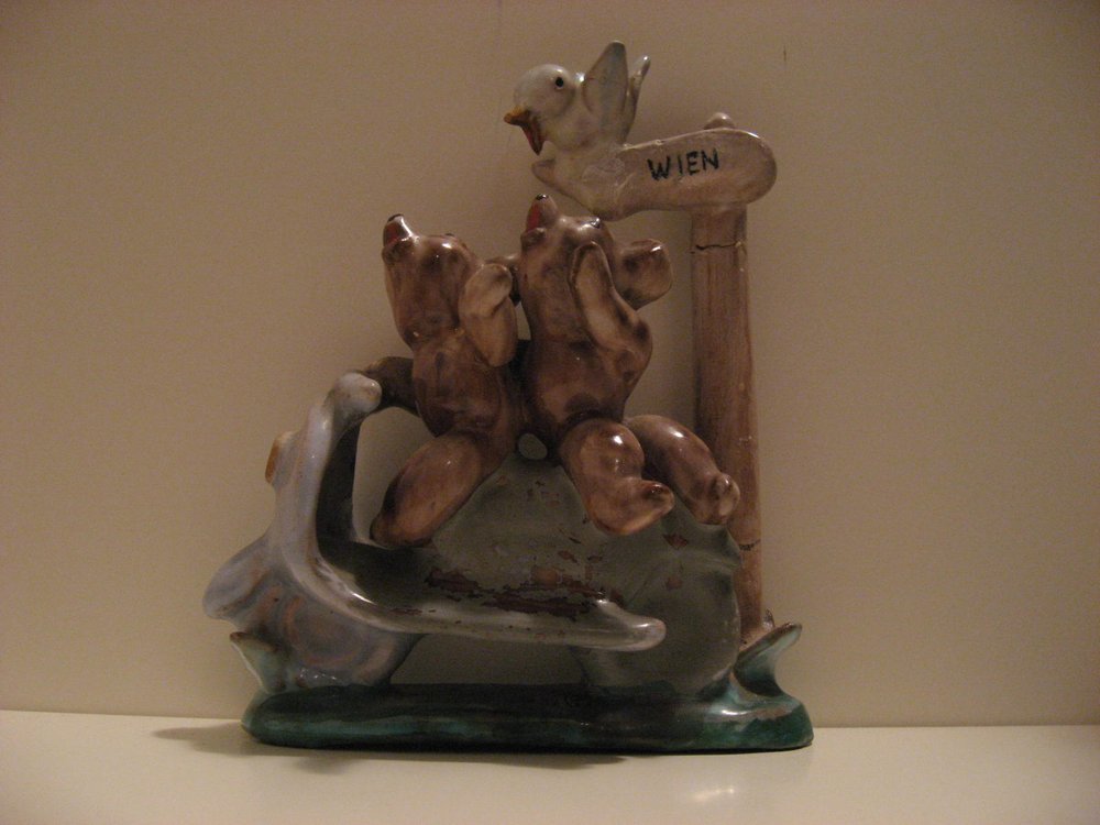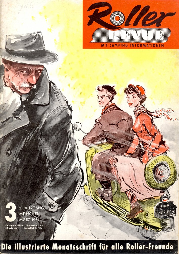 KUNST AM ROLLERStammt aus dem wiener Raum. sei angeblich in den 50iger jahren entstanden, Rollermotiv mit zwei Bären auf dem Weg nach Wien. Österreichische Keramik, ich denke ein Einzelstück, die Machart sieht danach aus. Glasur im Bereich des Bodenblechs auf einer Seite nimmer perfekt, Wegweiser mit 2 Bruchstellen. Ansonsten aber leiwand beinand und wieder einmal ein herrliches Unikat. Roller RevueEinige sind aufgetaucht! -Und wieder bei der "Schreckschaube" Und weil mir eh so fad ist hier die kompletten Ausgaben zum download als pdf