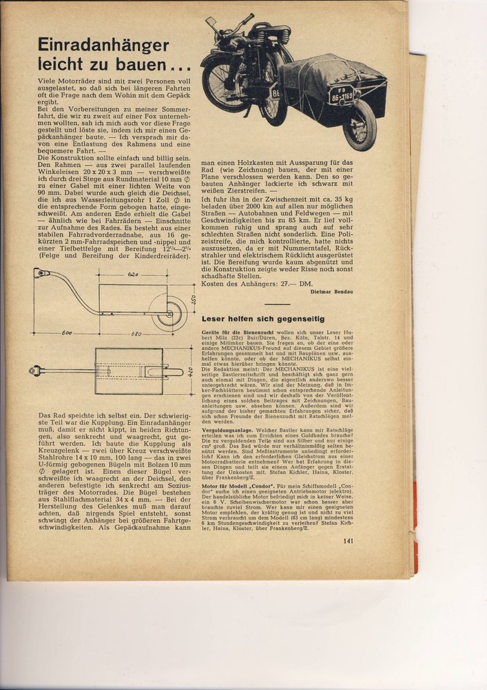 Bau deinen Anhänger in "Mechanikus", Ausgabe April 1956