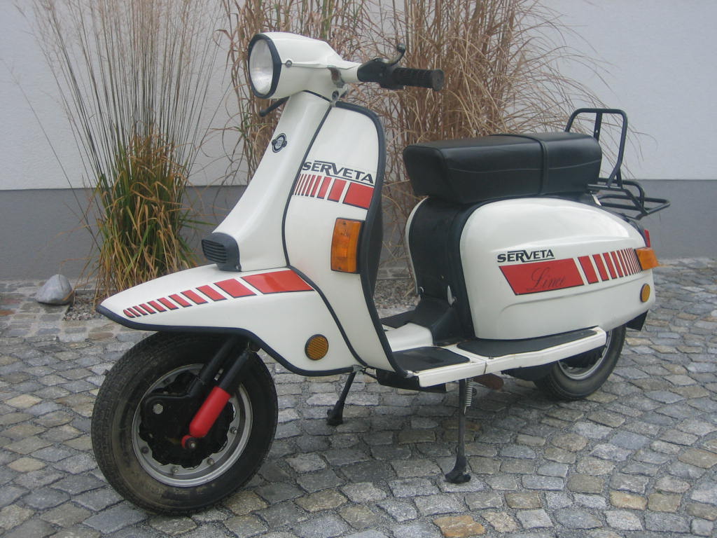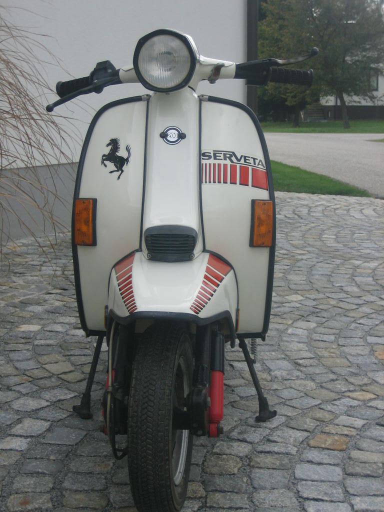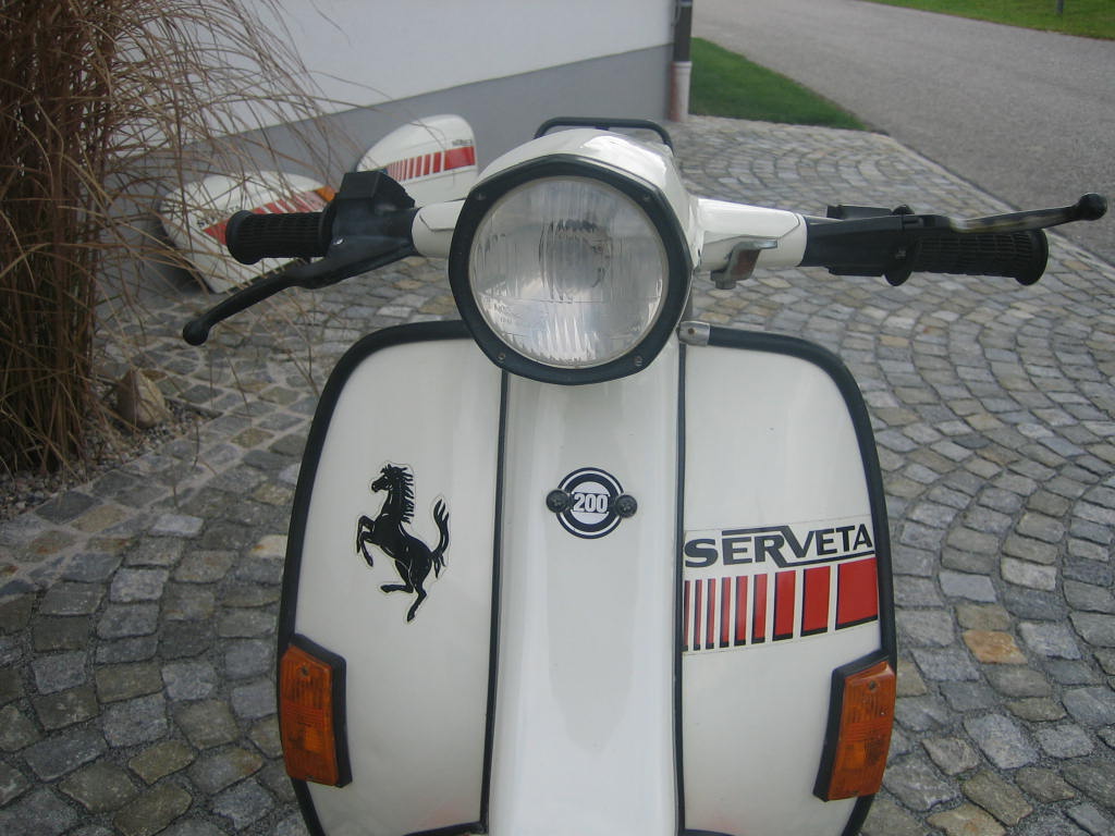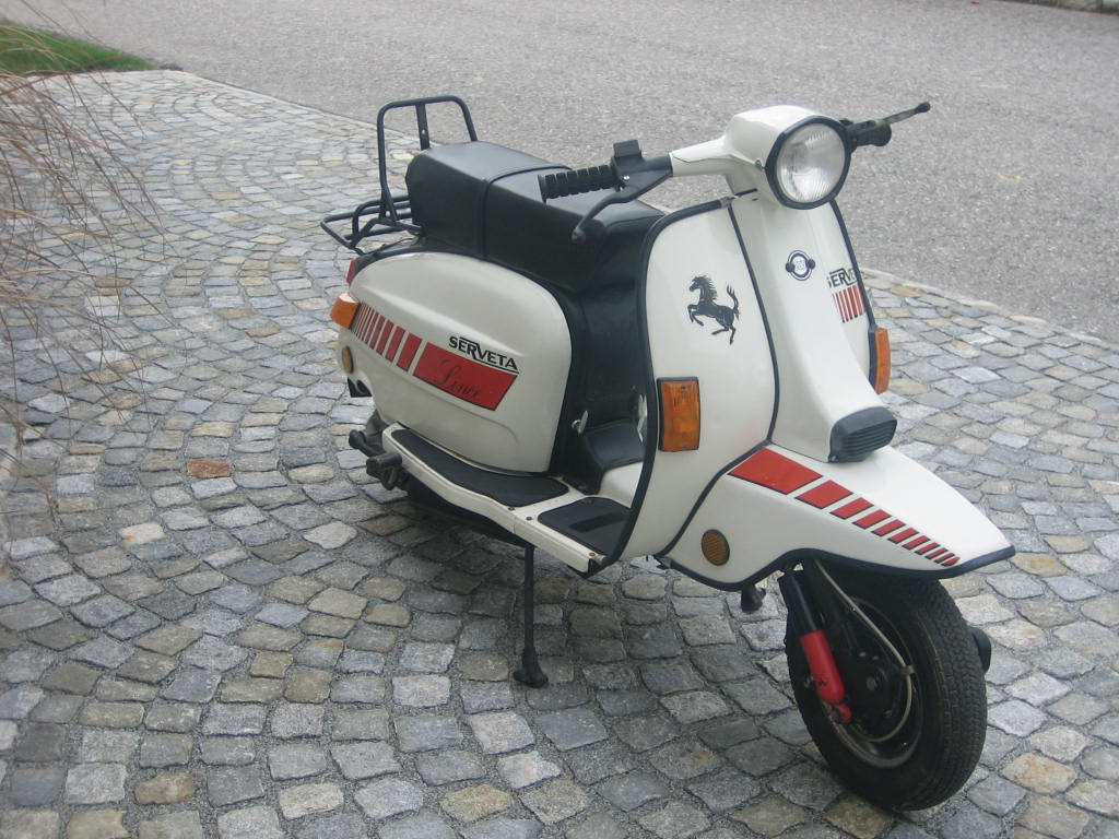 aus Erstbesitz mit 1663 km sehr schöne O-Zustand inkl. 2 Schlüsselsätzen und allen Papieren. Sammlerzustand!!! gekauf am 18-10-2009! 19-10-2009: Fahrzeug war zum Zeitkpunkten des Kaufes nicht fahrbereit da keine geladenen Batterie und Auspuff und Kurbelgehäuse aufgrund offenen Bezinhahn und hängengebliebenen schwimmer voller Bezin war!!! neu Kerze hinein ein wenig Startspray 2 kicks und die spanische Landy liefe :) :) hurra. 20-10-09: neue Batterie = alle Lichter ok 28-10-09: diverse NOS Teile und Griffe zum Tauschen bzw. fürs Lager bestellt. Heute nun mal endlich die NOS Teile welche ich im Dezember bekommen habe verstaut. dämpfer vorne & hinten, Kickstarter, Zündschloss, Rüli, Seitendeckeln, Blinker, Auspuff, riesiges 80iger Jahre Windschild, Tacho, und noch ein paar kleinigkeiten. 01-04-2010: in den letzten Tagen neue Reifen aufgezogen, Felgen auf innenseite neu lackiert und soweit fertig für Pickerl und anmelden gemacht. 27-01-2015 Ja Roller gehören bewegt..aufgrund der langen Standzeit vorm Kauf sind nun die Simmeringe hinüber...und Motor muss überholt werden..bis dahin steht die spanische Dame ohne Stress in meiner Sammlung Serveta Spanien