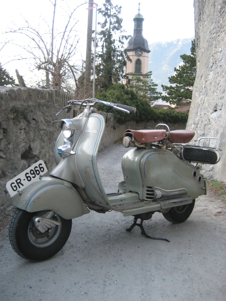 Diese Lambretta wurde 1951 in Zug (Schweiz) verkauft. Originalzustand, schönes Zubehör. In der Schweiz war bis 1954 die Nummer auf dem Schutzblech obligatorisch, danach wurde es wegen erhöhter Unfallgefahr abgeschaft.