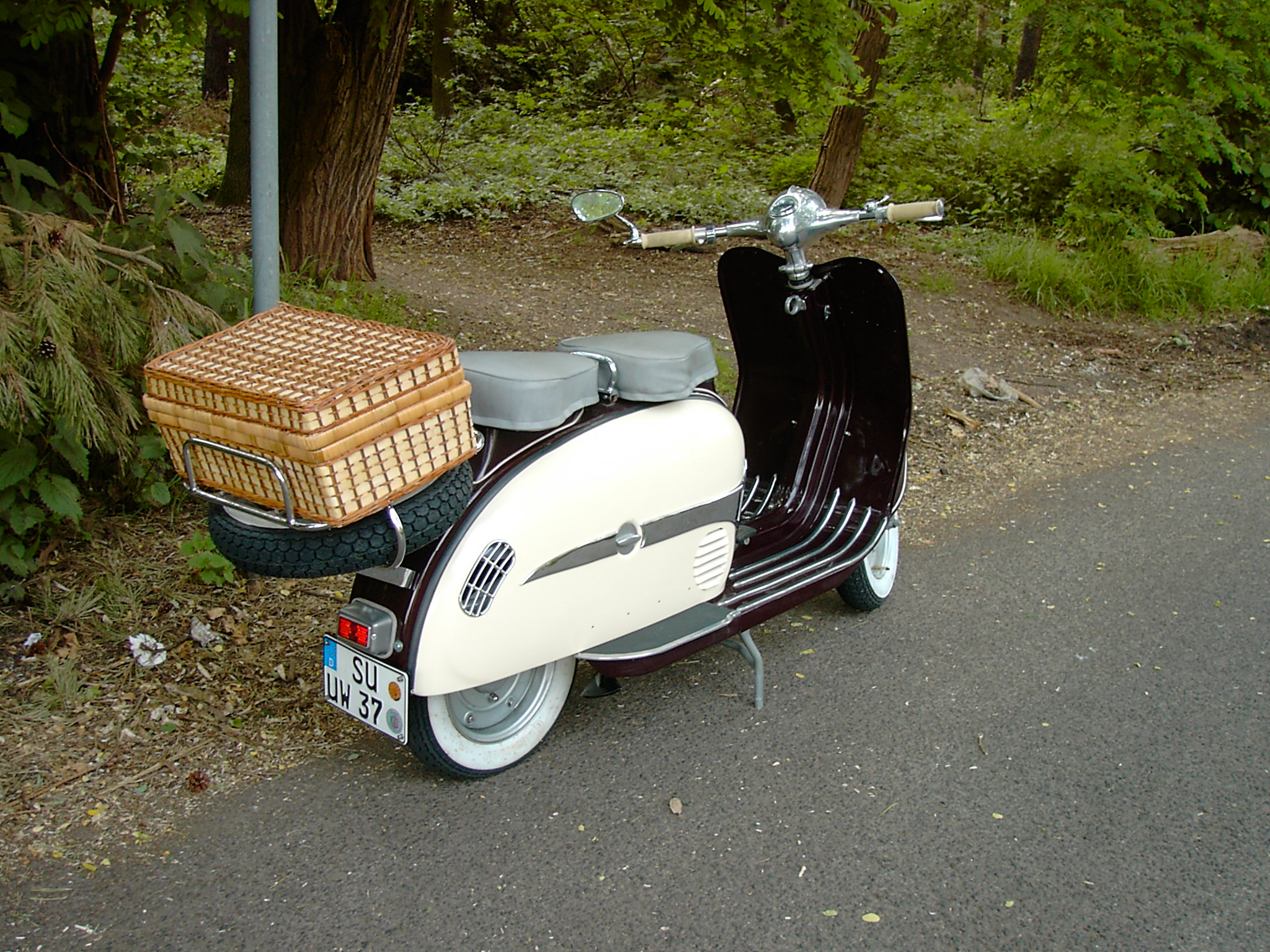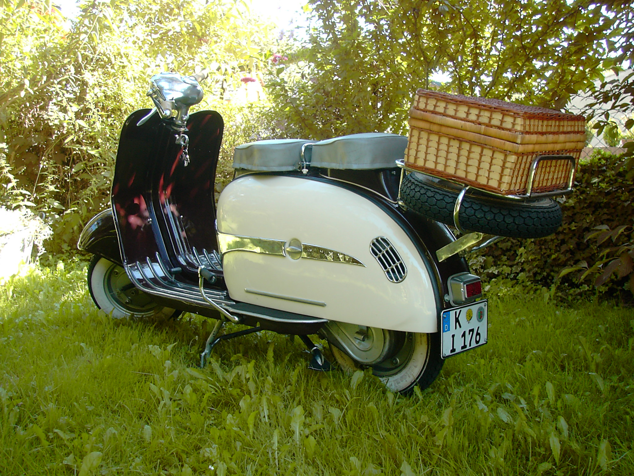 Der deutsche Rollertraum. Restauriert zw. 2001 und 2009. Exportmodell mit voriger Zulassung in Großbritannien. Sonderzubehör: Gepäckträger mit Reserveradhalterung. ![]() Dürkopp Deutschland