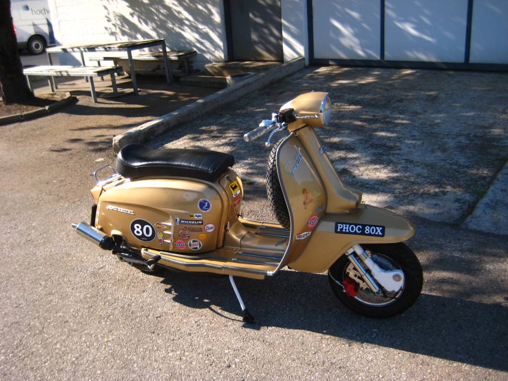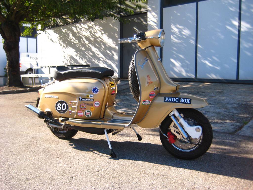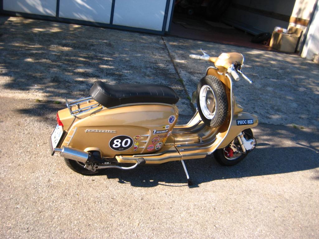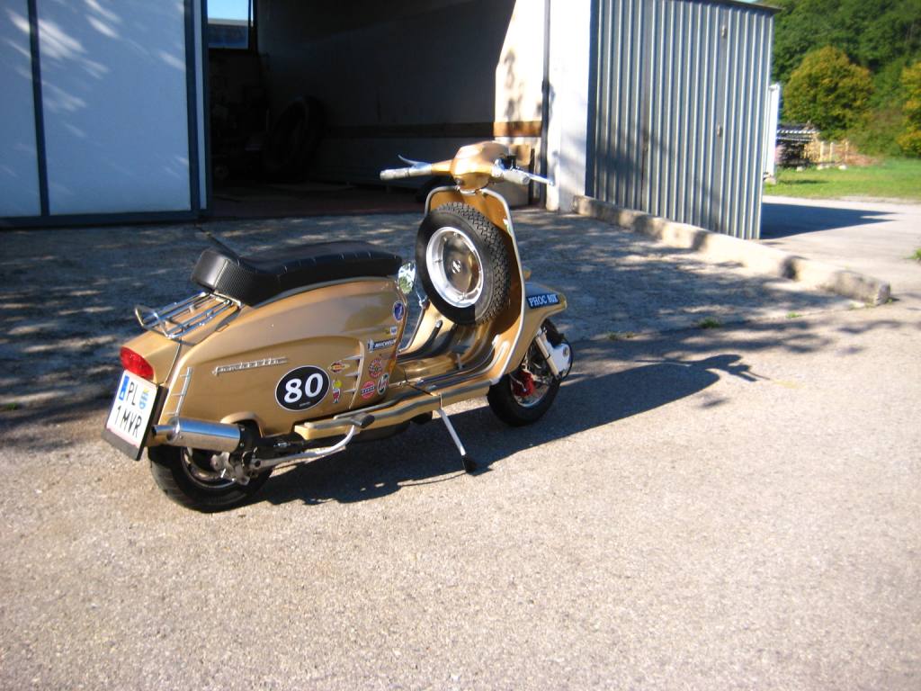 Modell: Li 150 Golden Special Herstellerland: Italien Baujahr: 1965 Hubraum: um die 190 ccm Leistung: -- ps Höchstgechwindigkeit: -- km/h Bereifung: Michelin S1 Farbe: Gold