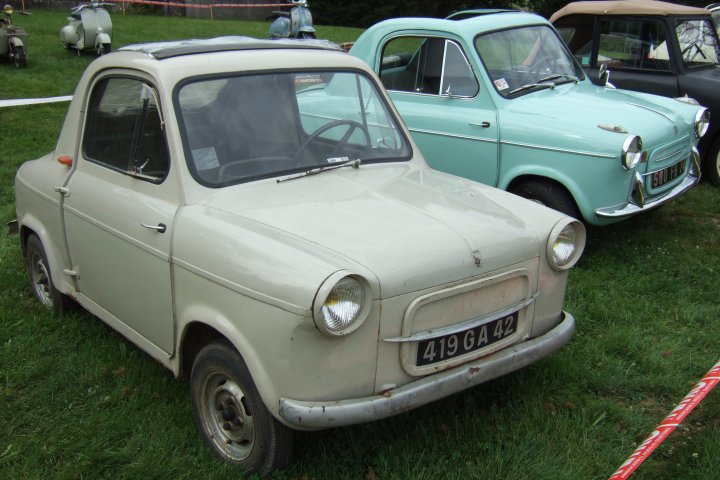 first serie ( fixed windows ) and very rare model " tourisme" that was low cost model ( no chromes, no aluminium trims ,only one moustache, only one wipper washer, 2 cv citroen seats ( a blanket with sandows !) unique sand color ... compare with my luxe serie in the back Vespa Italien