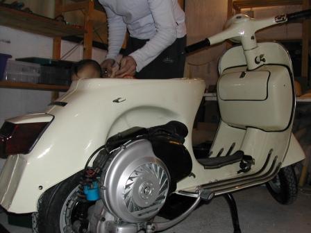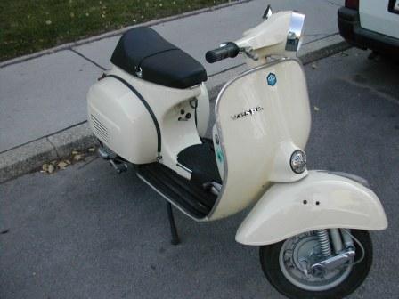 Mein Mädchen aus Parma.Karosserie bis auf Tacho (weiß), Farbe (avorio - von meiner Chefin ausgesucht) und Sitz (Corsa) oiriginal.Motor leicht überarbeitet. Vespa Italien