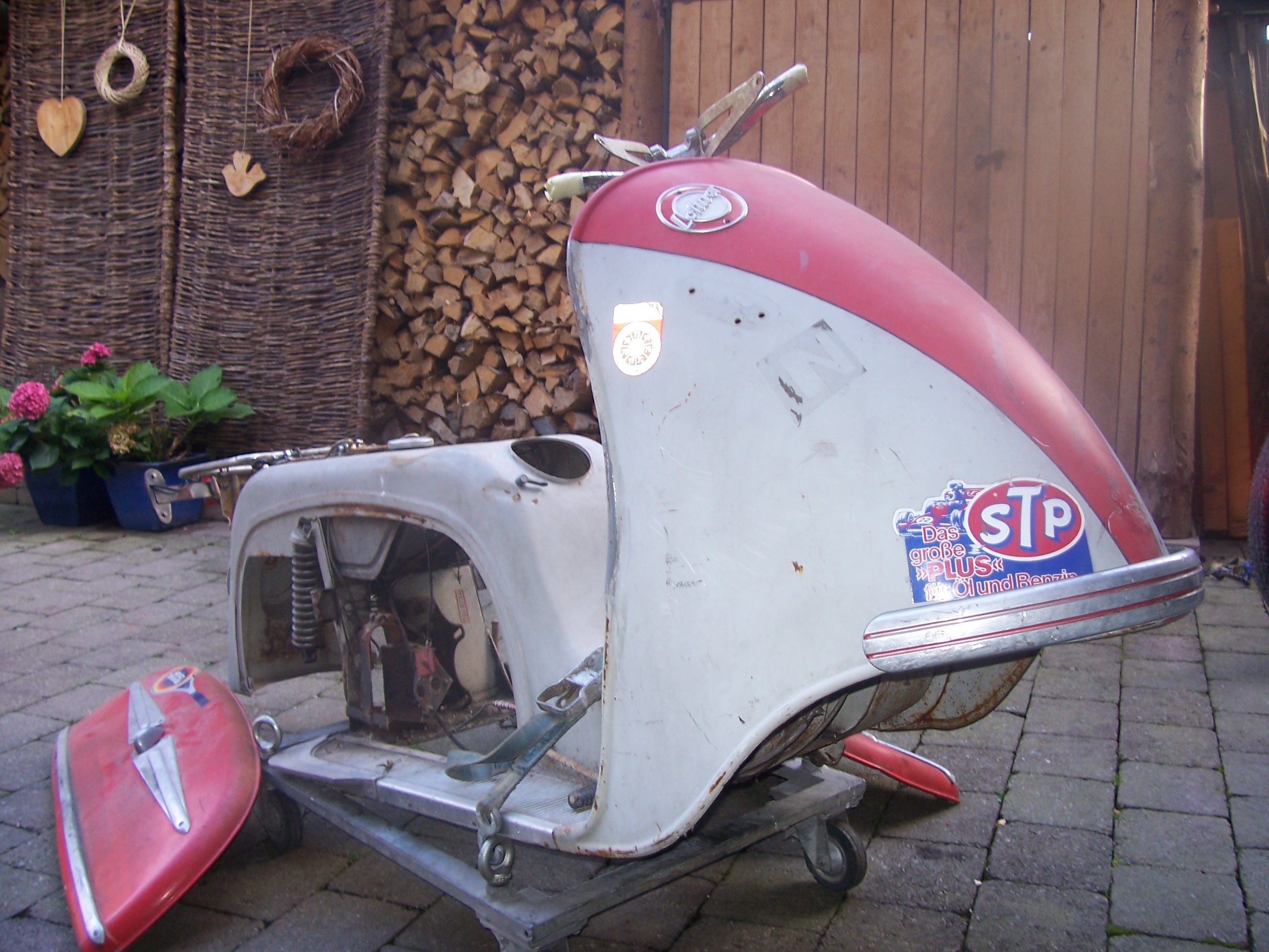 August 2015: hintere Radaufhängung lackiert (Schwinge, Kettenkasten) Dezember 2014: Sitzbank rekonstruiert und vom Sattler abgeholt. Jetzt noch Beschläge und die Zierleiste montieren. Falls jemand eine Sitzbank nachbauen will oder braucht. Ich habe noch Material für weitere Sitzbänke übrig bzw. ich habe mir Baupläne gezeichnet. O-Lack oben okay, unten Rost. Also Roller unten entlackt/entrostet und neu lackiert. Der sichtbare O-Lack wird aufgearbeitet. November 2014: Gepäcksfachdellen gerichtet, jetzt schliesst es wieder ordentlich, Delle im vorderen Sitzbereich gerichtet, jetzt ist es wieder grade - O-Lack ist erhalten geblieben. Sitzbank Nachbau sollte bis Weihnachten fertig werden. 12. April 2013: gut erhaltenen L150 Auspufftopf gekauft. April 2013: Sitzbank Fragment gefunden - werde vermutlich die Sitzbank nachbauen, falls jemand eine braucht könnten gleich mehrere gemacht werden. Einfach Bescheid geben. nette Basis zum Neuaufbau auf ebay gefunden. Zwar ein paar Dellen aber bin zuversichtlich den O-Lack erhalten zu können. Leider jede Menge Fehlteile: Räder, Naben, Lenker, Gabel, Tacho, Sitzhöcker oder Sitzbank, Tankdeckel, ein Deckel für den Werkzeugkasten, Motor, Auspufftopf, Falls jemand was hat bitte melden. herbstwind@gmx.at 10.01.11: die ersten Teile schon bekommen: Werkzeugdeckel (sogar mit originalem Lohner Schlüssel), Halterung für Paketträger, Schaltstange, Hebel, Hupe, Tankdeckel und Schweinwerfertopf. Wer hat noch Räder, Gabel, Kettenschutz, Radnaben, Lenker, Tacho und Motor? 24.4.2011: Lenker, Felgen, Gabel, vordere Radnabe von Lohner Leo bekommen. Vielen Dank! Motor (zwar mit Fehlteile (Lichtanlage, Seitendeckel, Kupplungsteile) am Sigmundsherberg Flohmarkt gefunden. Jänner 2013: Motor bereits überholt (neuer Kolben, Zylinderschleifen, Kurbewelle komplett überholt, ....). ![]() Lohner Österreich
