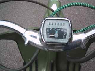 Modell: Vespa 125 V32 Herstellerland: Italien Baujahr: 1952 Hubraum: 125 ccm Höchstgechwindigkeit: 75 km/h Eigengewicht: 89 kg Gesamtgewicht: 239 kg Fahrgestellnr.: V32T 238 678 Motornr.: V32M Bereifung: 3.50 - 8 Farbe: grün