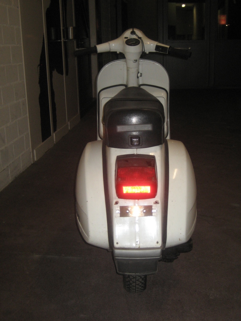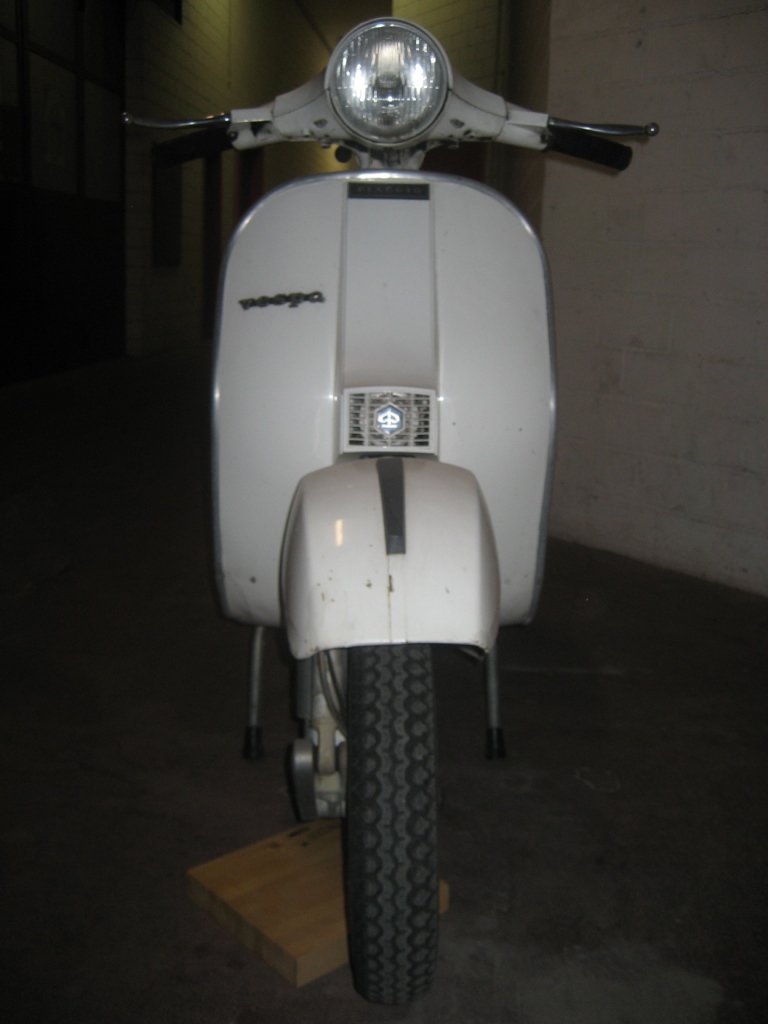 Vespa P125X ohne Blinker, Originallack, Sparversion konnte aber auch mit Blinker geordert werden, Schalgriff ohne Blinkschalter.
