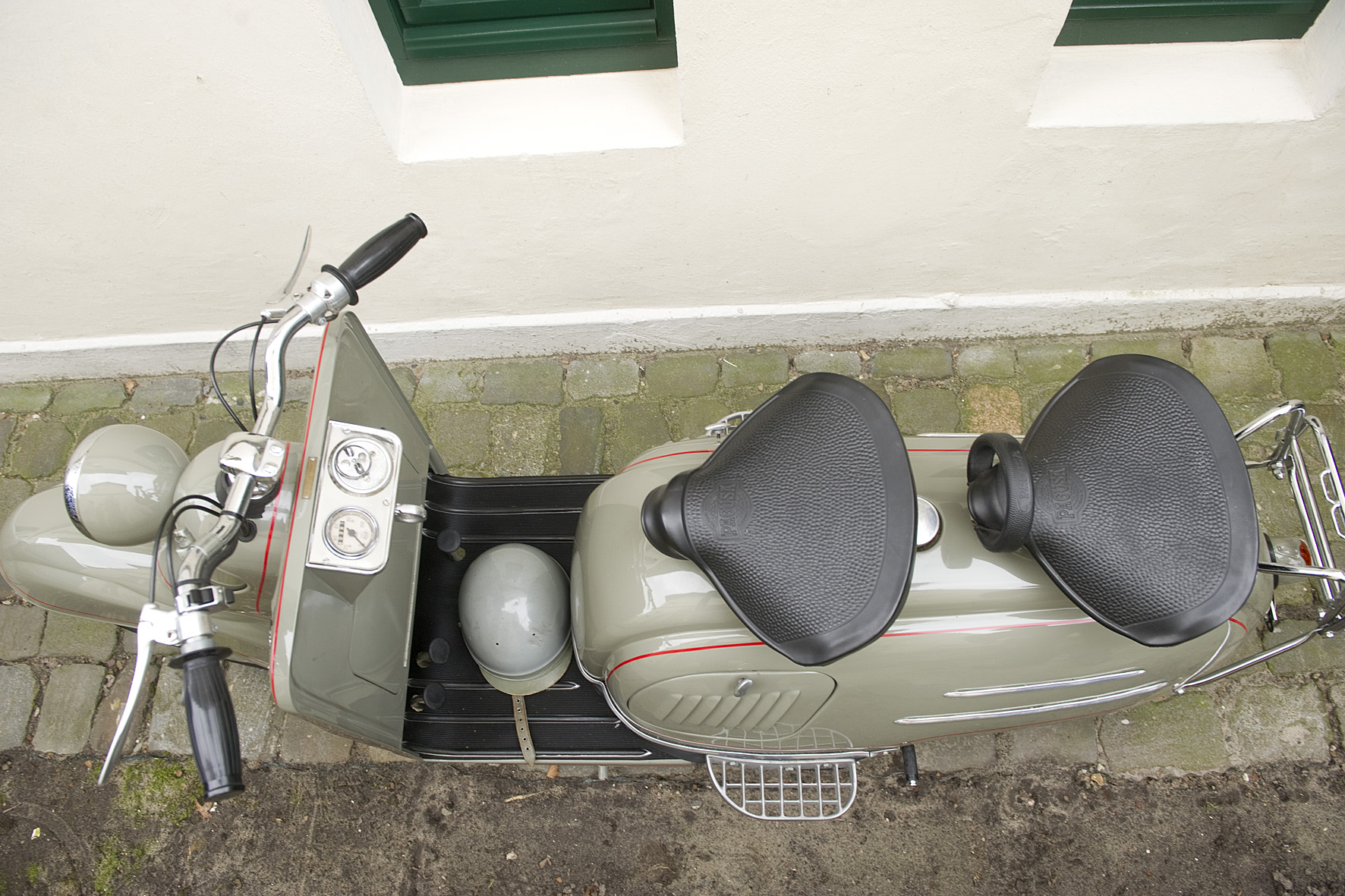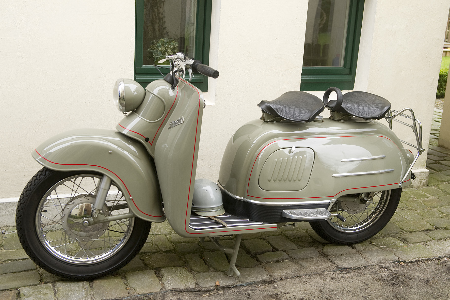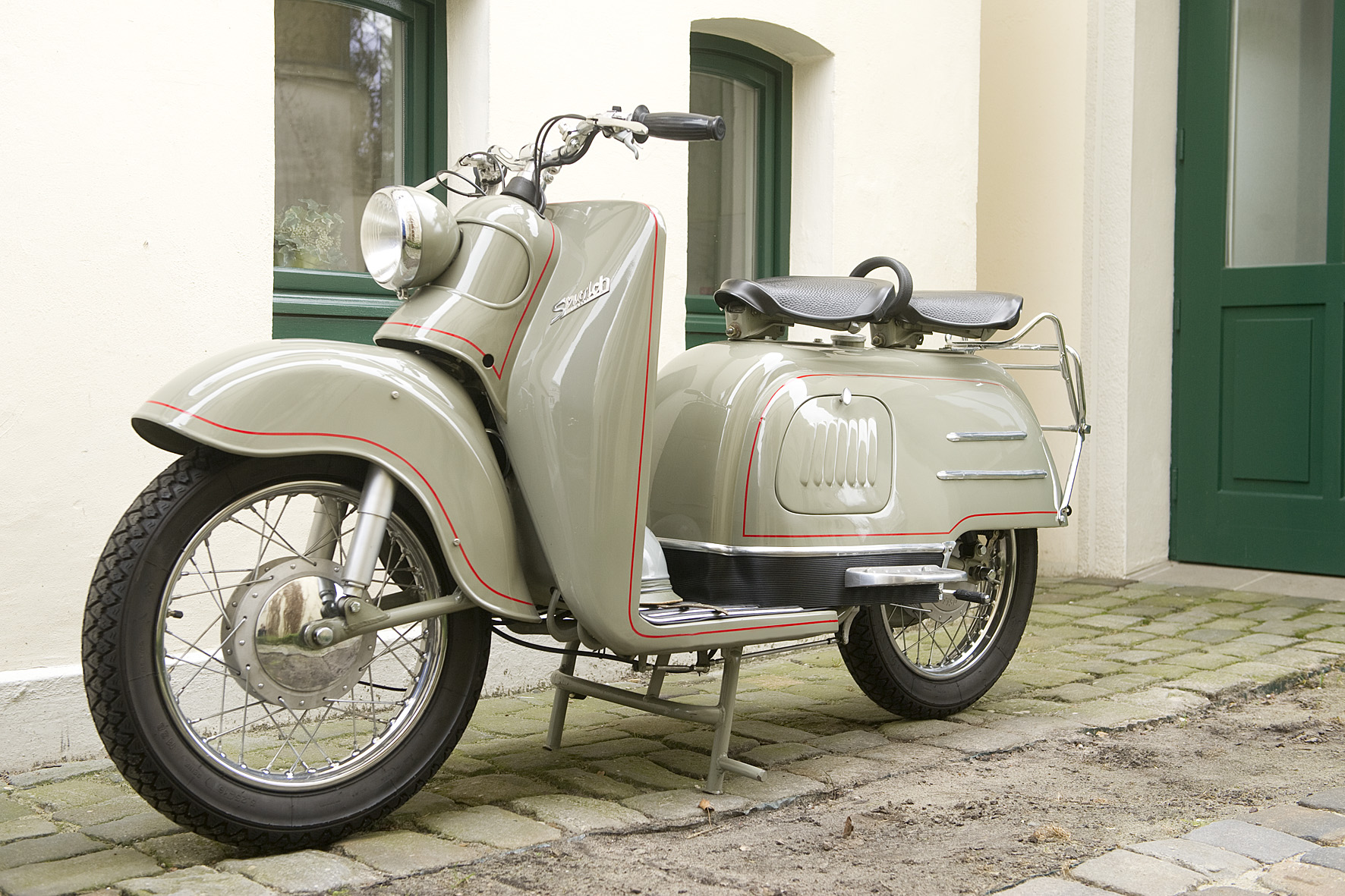 Der Vorbesitzer hat diesen Roller durch eine Fachwerkstatt komplett neu aufbauen lassen. Der Strolch Progress stand Jahrzehnte hinter Strohballen in der Scheune des Großonkels. Progress Deutschland