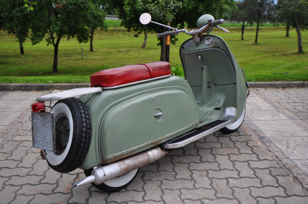 Modell: L125 SOZIUS ORIGINAL? Herstellerland: Österreich Baujahr: 1960 Hubraum: 124 ccm Leistung: 6,1 ps Höchstgechwindigkeit: ca. 80 km/h Verbrauch: 2,8 bei 60 km/h l/100 km Eigengewicht: 110 kg Gesamtgewicht: 290 kg Fahrgestellnr.: 15/9629 Motornr.: 1041065 Bereifung: 8 Farbe: grün