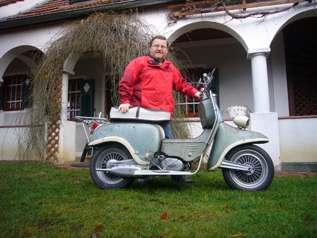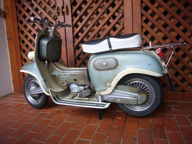 Modell: Mecky Herstellerland: Österreich Baujahr: 1958 Hubraum: 48 ccm Leistung: 2,1 ps Höchstgechwindigkeit: 45 km/h Fahrgestellnr.: 7118 Motornr.: 1110720 Farbe: Originallack