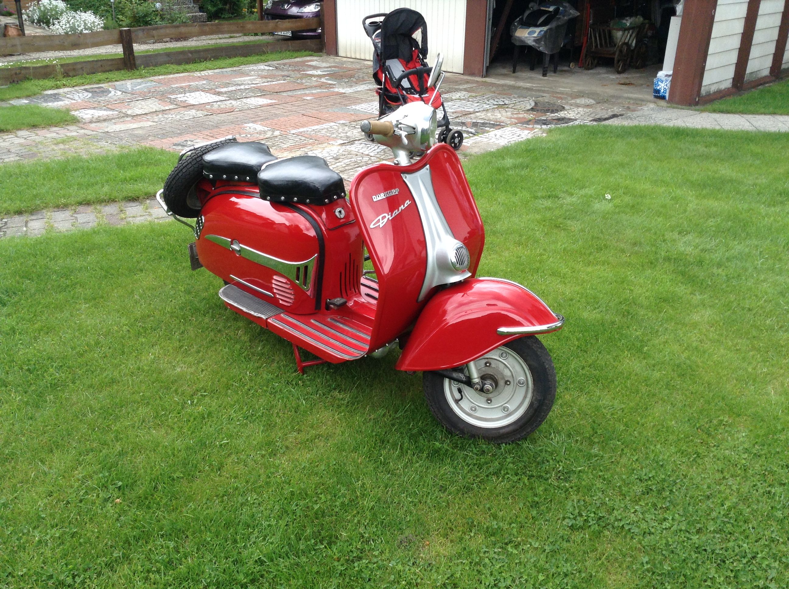 Modell: Diana Herstellerland: Deutschland Baujahr: 1957 Hubraum: 194 ccm Leistung: 9,5 ps Höchstgechwindigkeit: 85 km/h Verbrauch: 2.8-3.0 l/100 km Eigengewicht: 144 kg Gesamtgewicht: 294 kg Bereifung: 3.50-10 59J Farbe: Rot