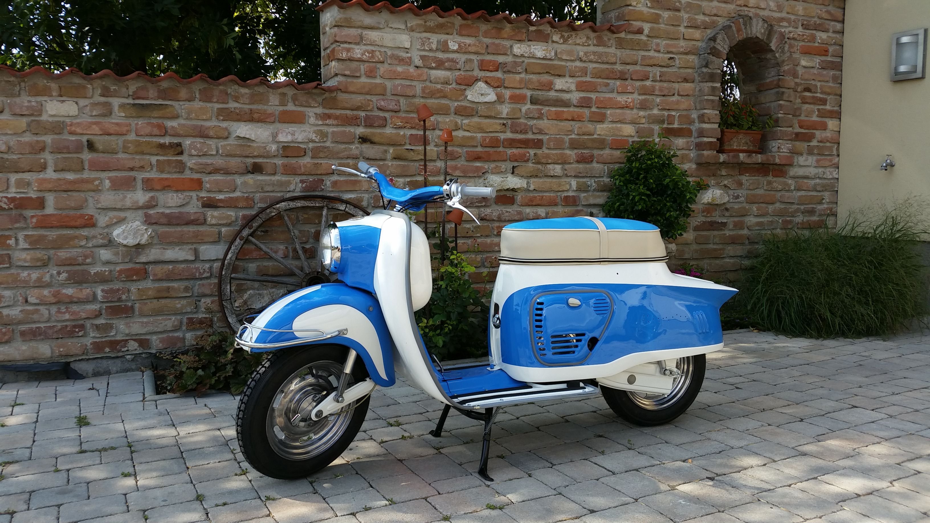 Modell: Ponny 2 DeLuxe Herstellerland: Österreich Baujahr: 1962 Hubraum: 49 ccm Vorbesitzer: 1 Bereifung: 3.00-12 Farbe: blau weiss