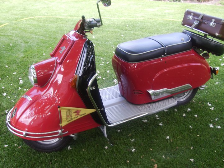 Modell: 103 A1 Herstellerland: Deutschland Baujahr: 1959 Hubraum: 200 ccm Leistung: ? ps Höchstgechwindigkeit: 100 km/h Farbe: Rot Schwarz