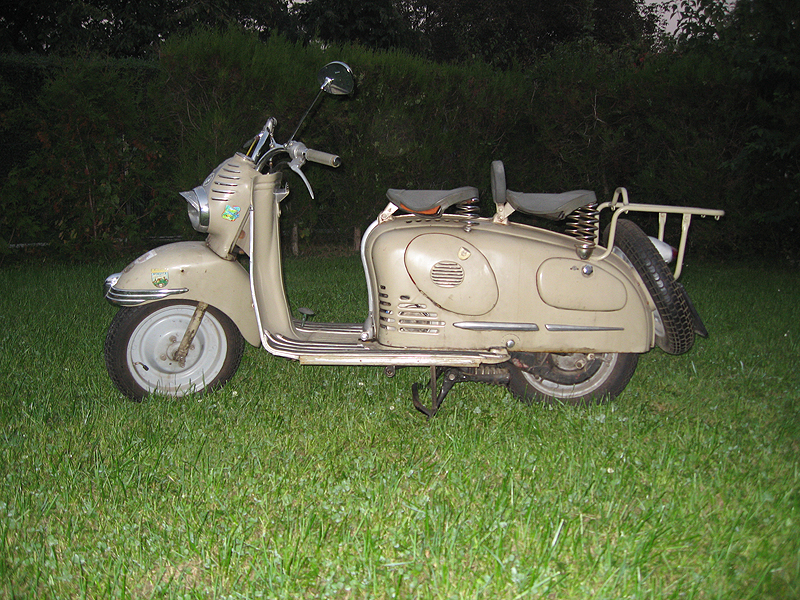 Baujahr: 1955 Hubraum: 125 ccm Leistung: 5 ps Höchstgechwindigkeit: ca. 85 km/h Eigengewicht: 105 kg kg Gesamtgewicht: 255 kg kg Bereifung: 12 zoll Farbe: Sepia