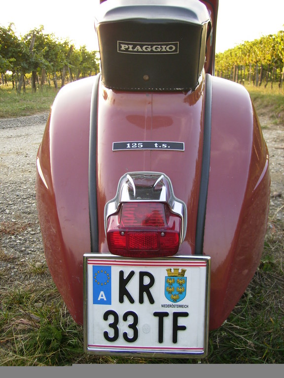 Modell: 125 TS Herstellerland: Italien Baujahr: 1975 Hubraum: 124 ccm Leistung: 5,3 ps Höchstgechwindigkeit: 93 km/h Eigengewicht: 89 kg Gesamtgewicht: 229 kg Fahrgestellnr.: VNL3T ************ Motornr.: VNL3M ************* Bereifung: 10 Farbe: rosso kathmandu