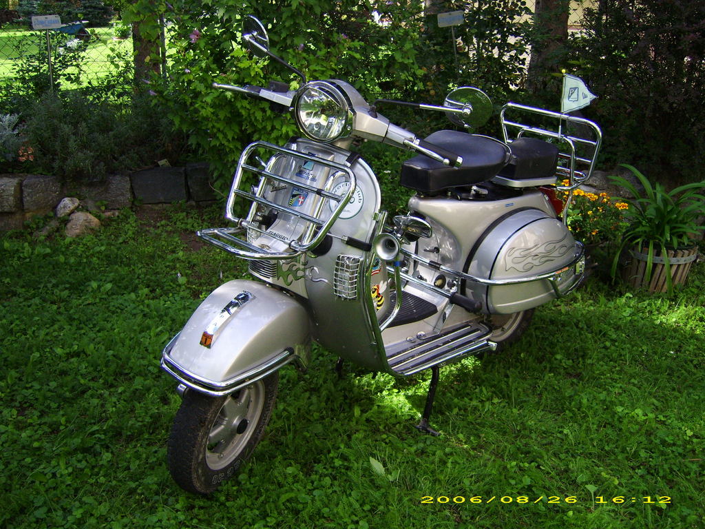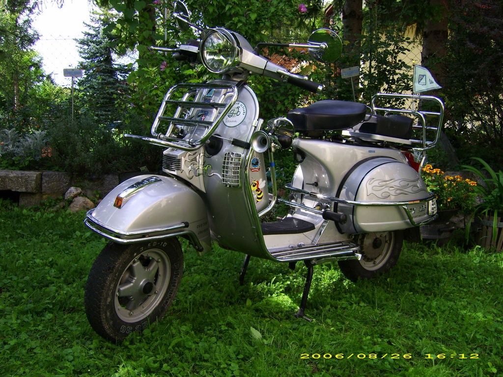 Modell: PX125MY Herstellerland: Italien Baujahr: 2003 Hubraum: 125 ccm Höchstgechwindigkeit: ~110 km/h Verbrauch: 3,5 l/100 km Vorbesitzer: 1 Bereifung: 10 Farbe: silber