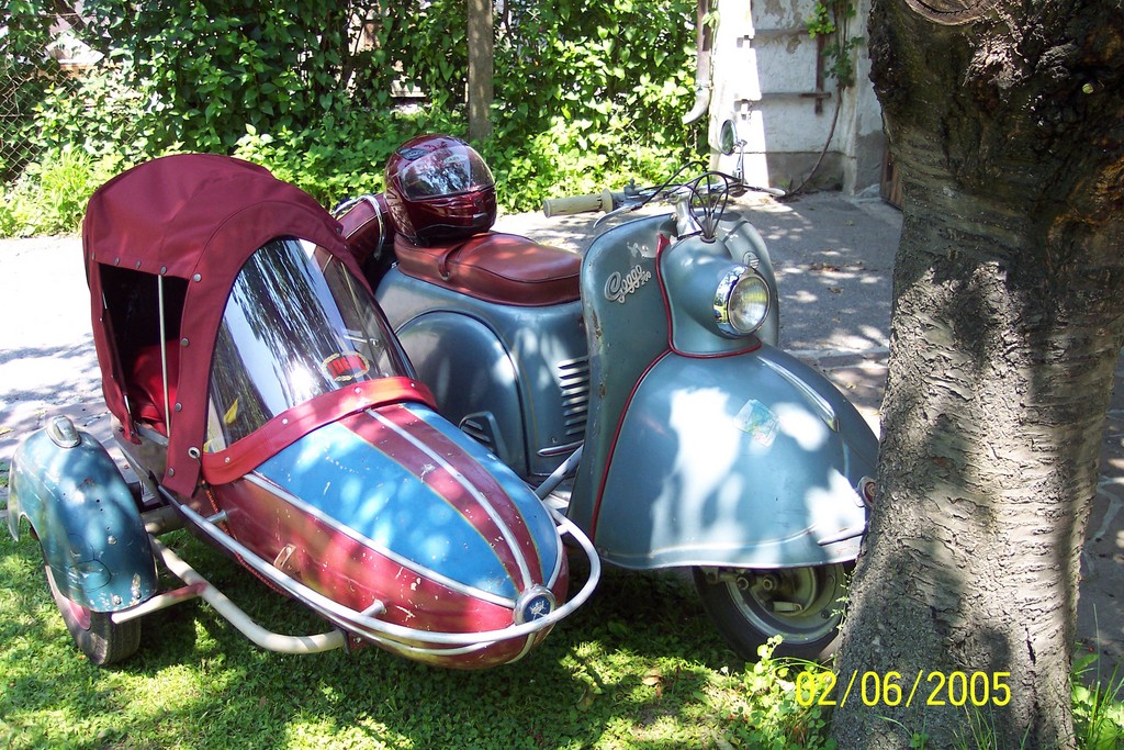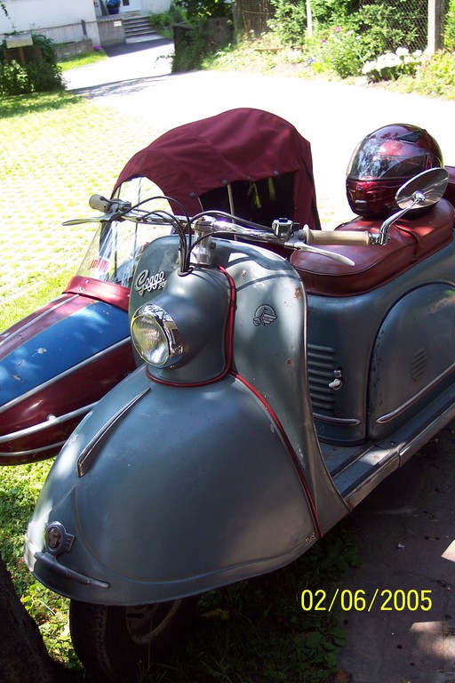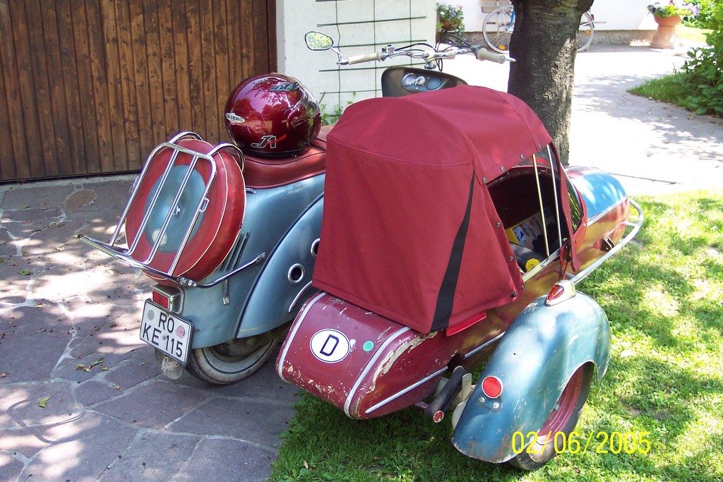 ROLLER: im orig. unrestaurierten Zstd. seit 1996 wieder zugelassen. Jetzt an die 52 ´tkm auf´m Tacho (erster! Motor). SEITENWAGEN: Royal RSG/S bj. 1962. Wurde nachträglich (1999) angebaut, sollte/wird in absehbarer Zeit kompl. Restauriert. Glas Deutschland