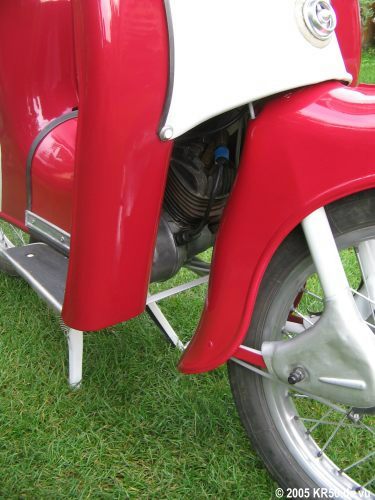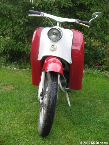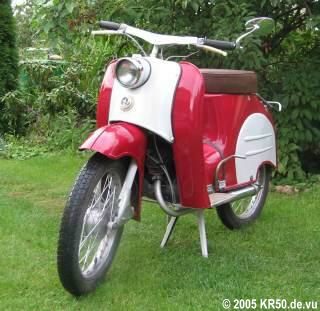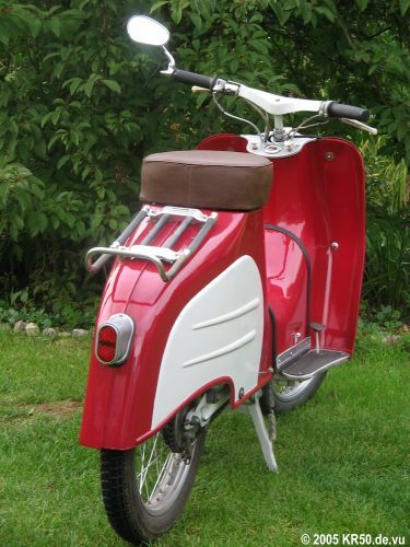 Der Simson-Kleinroller KR50 wurde ab Herbst 1958 in Suhl produziert und gilt als Vorgänger der \"Schwalbe\". Beim KR50 handelt es sich um ein Einsitzer und die Ausführung mit Stahlfelgen kostete damals 1.150,00 Mark, mit Leichtmetallfelgen war dieser Roller für 1.265,00 Mark erhältlich. ![]() Simson Deutschland