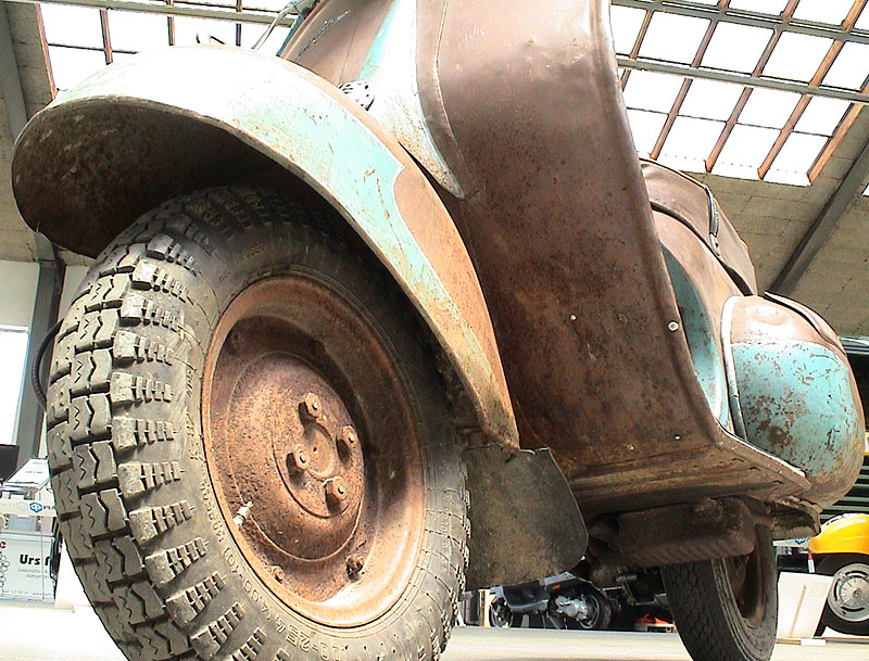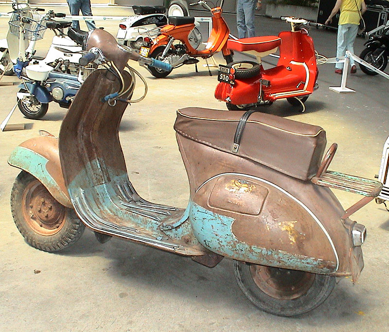 Modell: VP 150 Herstellerland: Russische Föderation Baujahr: 1962 Hubraum: 150 ccm Leistung: 5.5 ps Höchstgechwindigkeit: 80 km/h Verbrauch: 3.1 l/100 km Eigengewicht: 120 kg Fahrgestellnr.: 126722 Motornr.: 177664 Bereifung: 4.00-10 Farbe: Braun/Grün