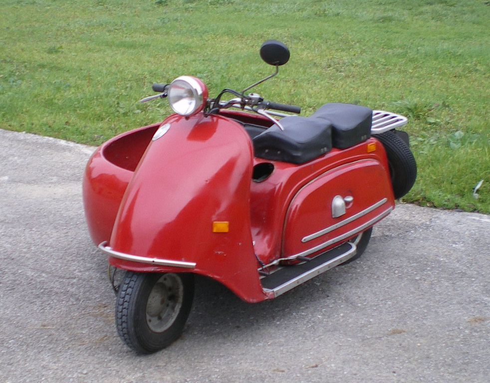 Modell: Rapid 200 mit Beiboot Herstellerland: Österreich Baujahr: 1956 Hubraum: 200 ccm Leistung: 9,5 ps Höchstgechwindigkeit: 75-80 km/h Eigengewicht: 175 kg Bereifung: 4.00-8 Farbe: rot O-Lack