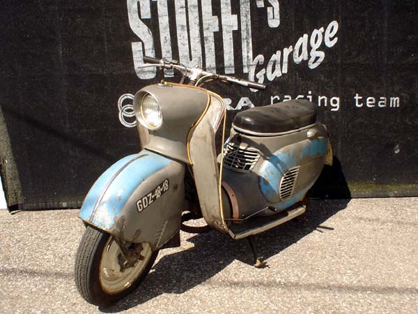 Anmerkungen: originaler Zustand, läuft gut, sehr eigenwillige Konstruktion mit einem gedrehten Motorradmotor