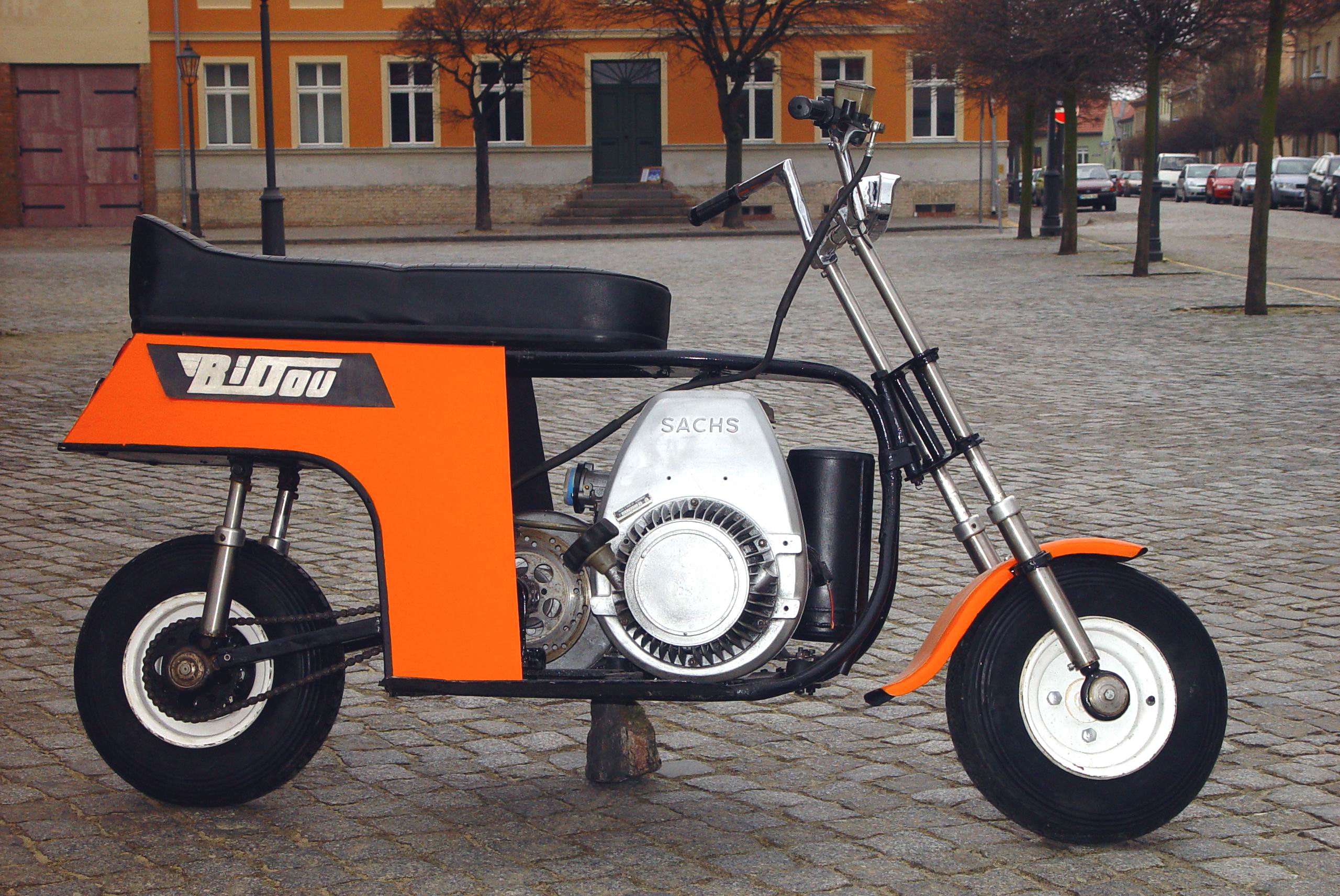 Ein prototyp! 340 cc Sachs- motor (ohne Getriebe, Fliehkraftkupplung ähnlich DKW-Hobby). Der Roller sollte dazu dienen, wenigstens den Motor ihres damaligen Snowmobils "Ski-doo" auch im Sommer nutzen zu können. Rahmen, Sitz, Gabel, Stroßdämpfer: Alles Handarbeit. Der Roller erhielt nach seiner Fertigstellung 1968 keine Straßenzulassung, weil er kei...