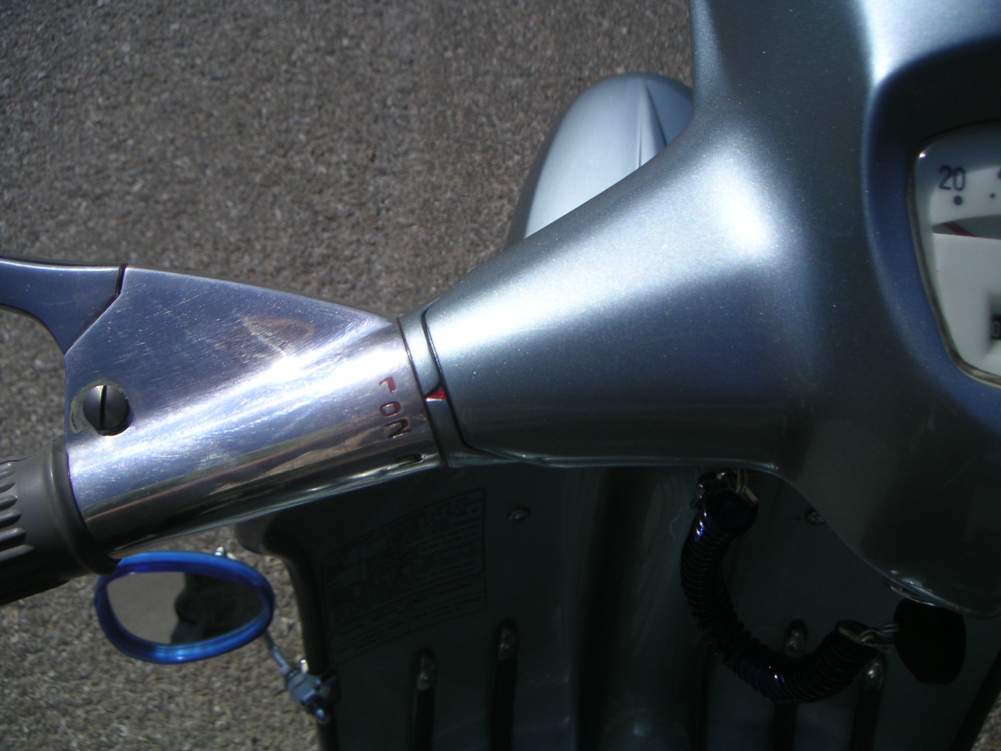 GT-Kit mit 186ccm, 25 PHBL-Vergaser, Tino Sacchi Ancillotti-Auspuff. LI150 Getriebe auf 16/47. Wenn jemand weiß wo es den richtigen Aufkleber für das Luftfilterknie (in italienisch) gibt, bitte melden. Dieser ist von einer 2ten Serie und passt nicht aufs Knie, deshalb ist er an der Toolbox. Innocenti Italien
