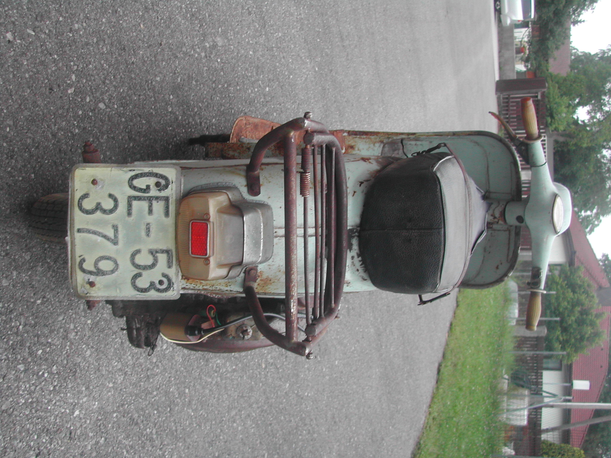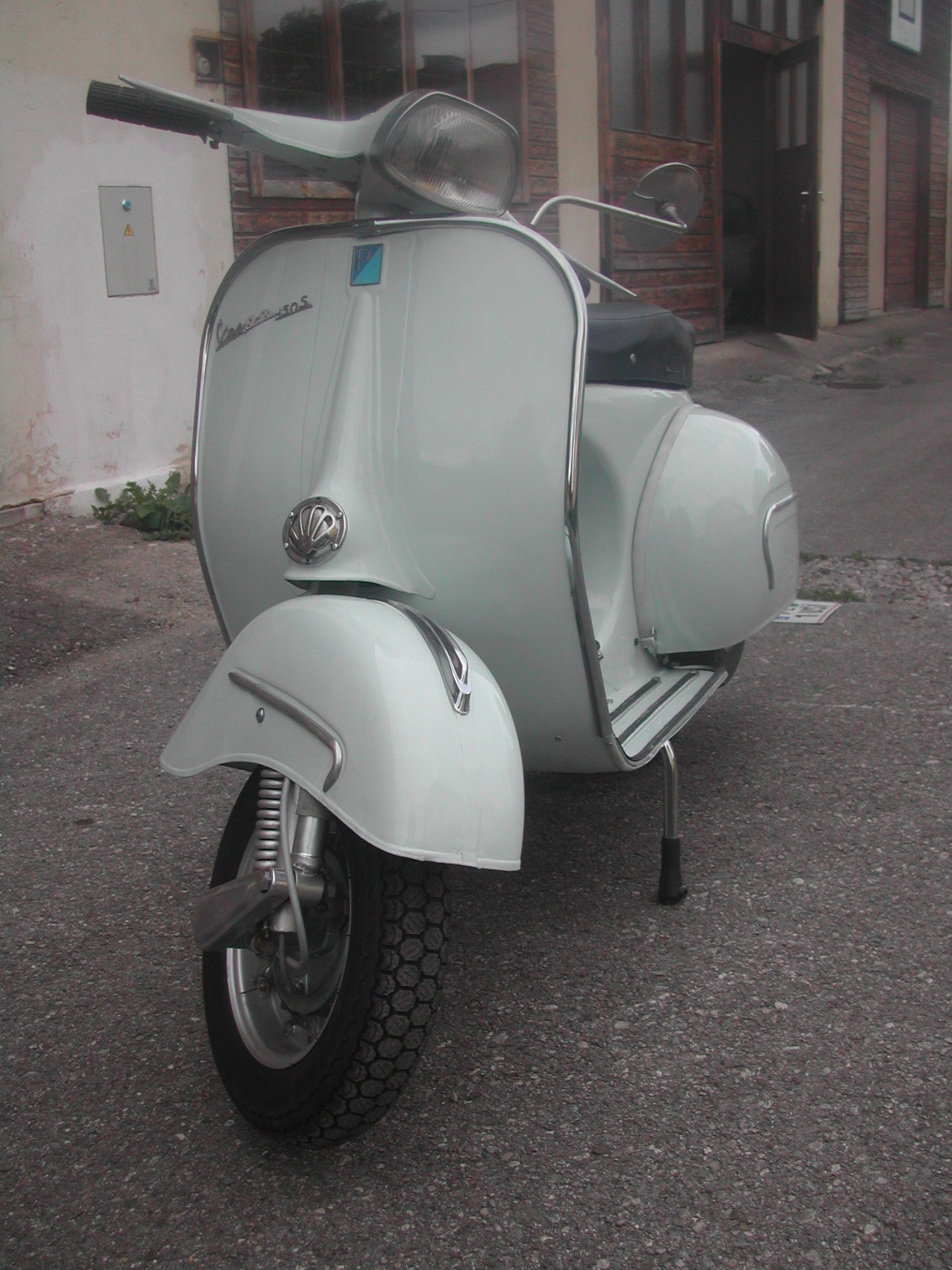 Modell: 150S Herstellerland: Spanien Baujahr: 1965 Hubraum: 150 ccm Höchstgechwindigkeit: 90 km/h Eigengewicht: 92 kg Fahrgestellnr.: V13131856 Motornr.: 502M 131833 Vorbesitzer: Spanier Bereifung: 10 Farbe: vormals blau - nun käger grau
