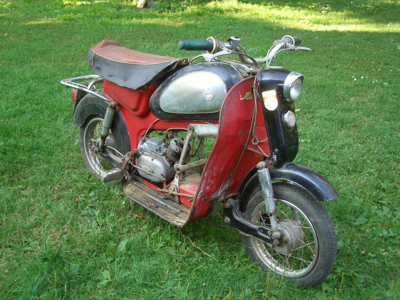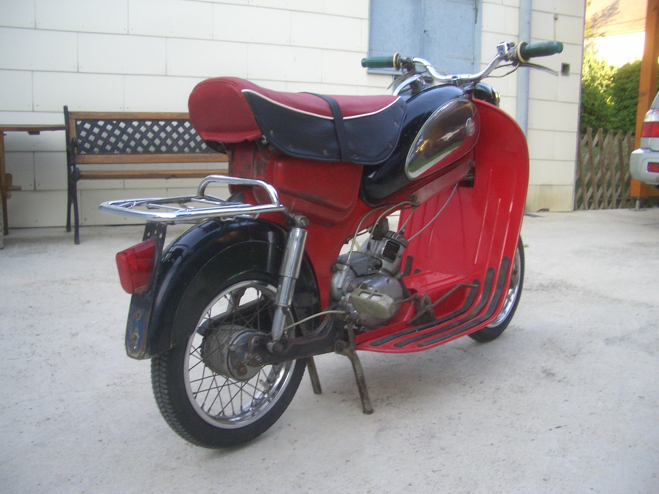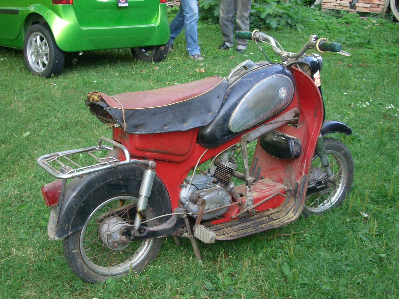 Stand einige Jahre bei einem Freund in der Scheune. Seit 21.8.2008 frisch bepickerlt und angemeldet. Am 23.8.2008 gleich die erste Zweirad-Ausfahrt mitgemacht, vor dem Start gleich einmal die Tachowelle abgerissen und danach nicht einmal bis zur Mittagspause gekommen. :( Ölt irgend wo unter dem Vergaser heraus und saugt auch das Öl in den Vergaser. Ich trag es mit Fassung, dass ich wieder eine ungewollte Arbeit für den Winter habe. ![]() Lohner Österreich