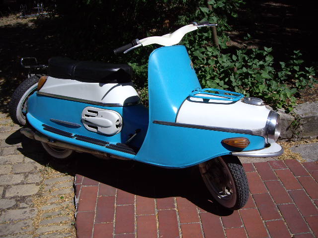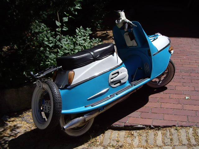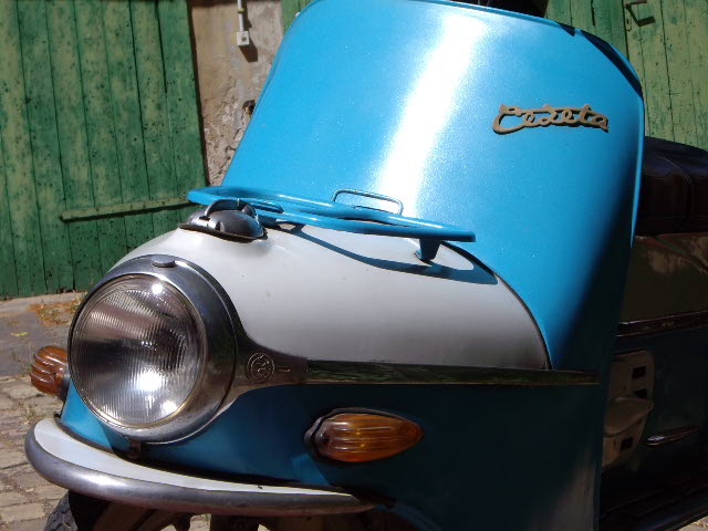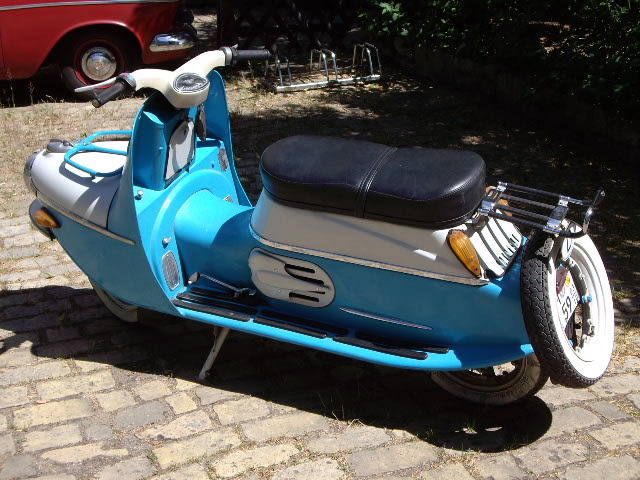 Tschechischer Spitzenroller aus den böhmischen Motorradwerken Strakonice CSSR. Karosserieform ähnelt den französischen Peugeot-Rollern der 50er Jahre.