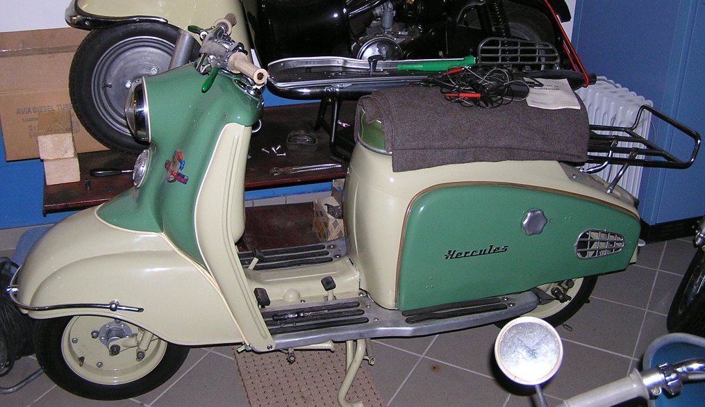 Ein sehr schöner, aber irgendwie vergessener Roller aus der Bunten Wirtschaftswunderzeit. dieser Roller (optisch ähnlich mit der Contessa) wurde ab 1955 gebaut und ist mit dem 200ccm Sachs Motor versehen, der auch im Messerschmitt Kabinenroller KR200 seinen Dienst versieht. Leider wurde genau dieses diesen Roller oft zum Verhängnis, da die Motoren für die Messerschmitten geraubt wurden. Dieser Roller hier ist restauriert, aber die Basis ist davor nicht schlecht gewesen.