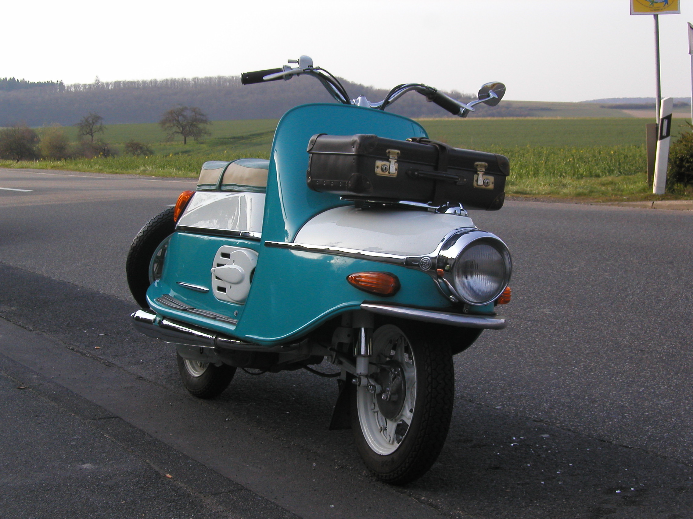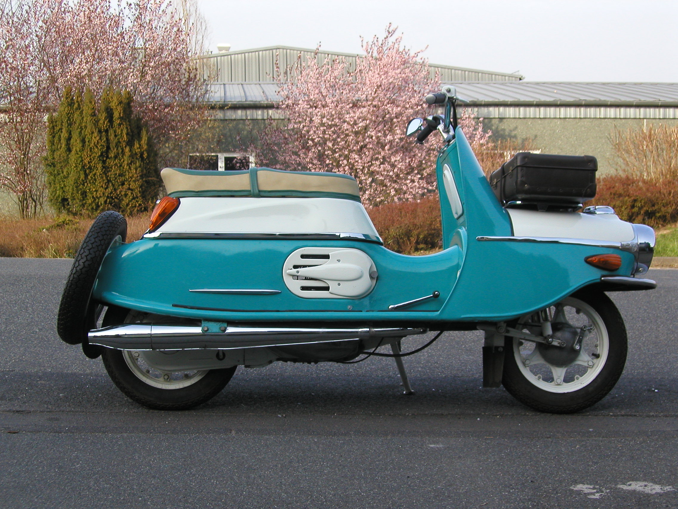 Tschechischer Spitzenroller aus den böhmischen Motorradwerken Strakonice CSSR. Karosserieform ähnelt den französischen Peugeot-Rollern der 50er Jahre.