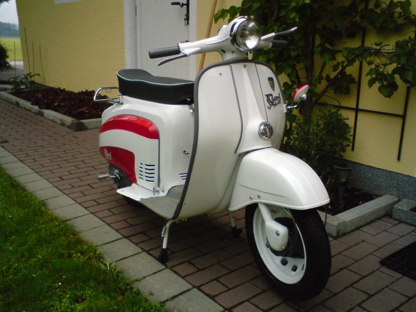 Modell: Capri 125 luxus Herstellerland: Italien Baujahr: 1968 Hubraum: 125 ccm Leistung: 6,5 ps Höchstgechwindigkeit: 85 km/h Farbe: weiss-rot
