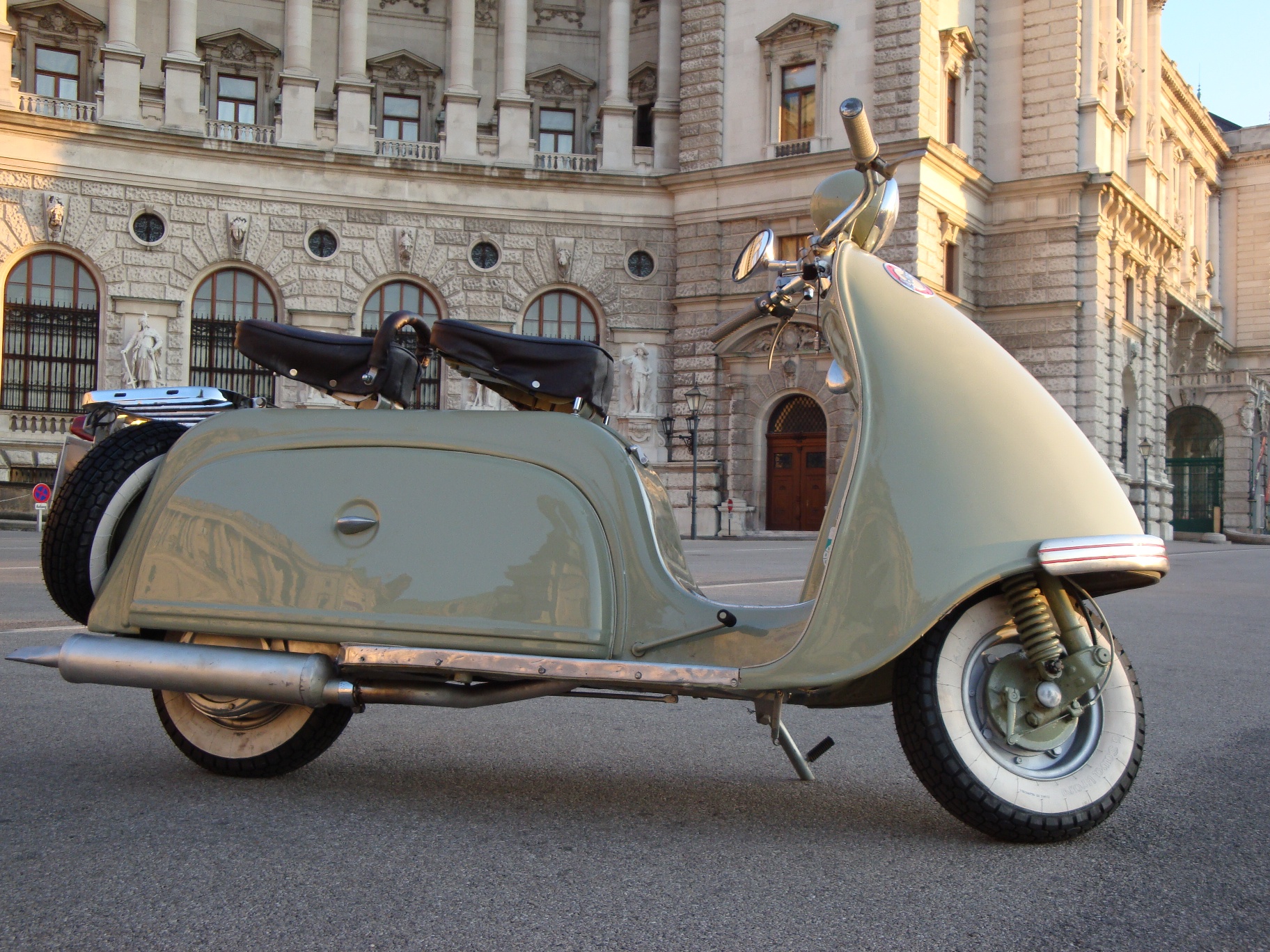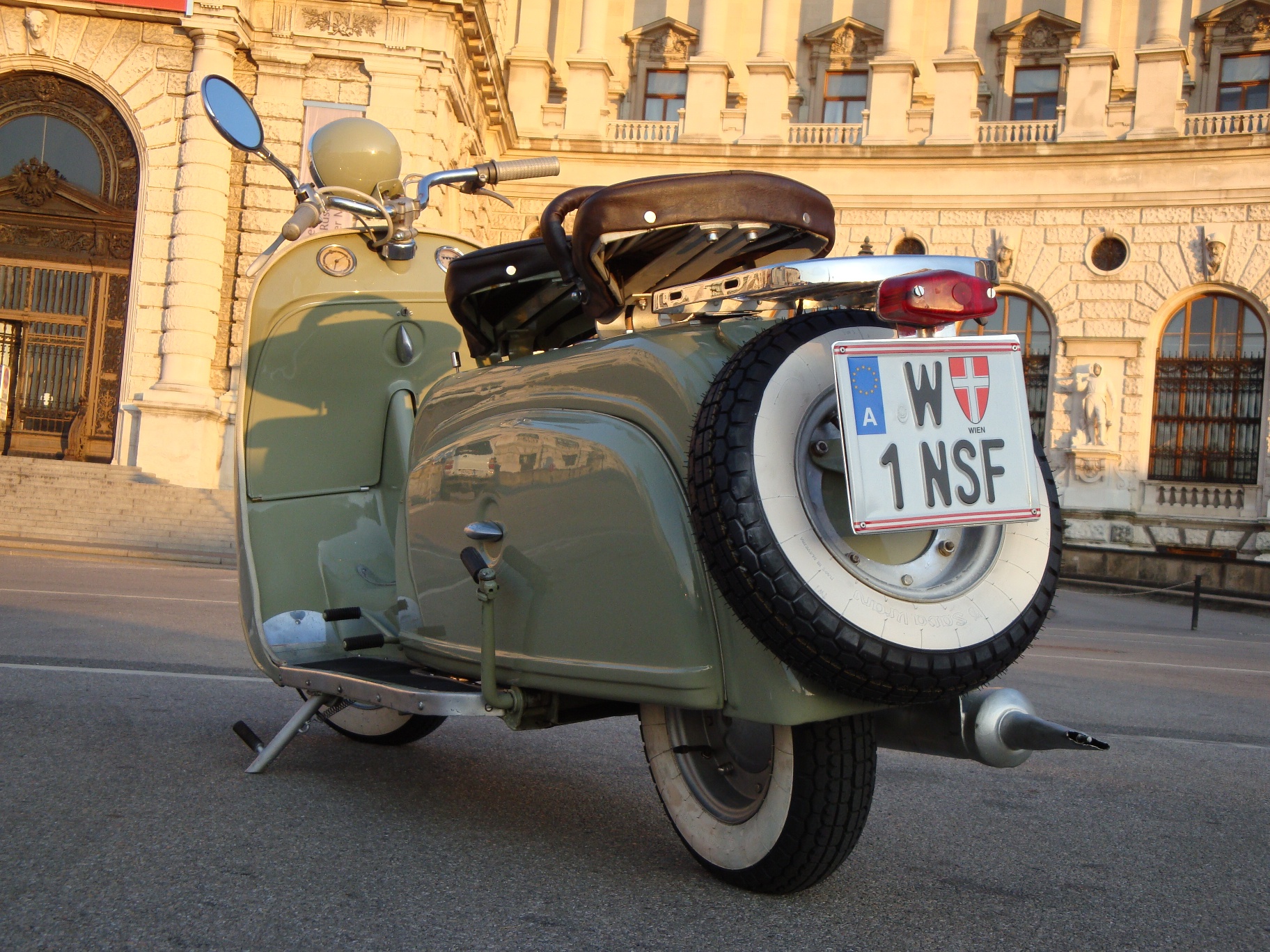 Modell: l 125 Herstellerland: Österreich Baujahr: 1954 Hubraum: 124 ccm Leistung: 6.1 ps Höchstgechwindigkeit: 80 km/h Farbe: olivgrün