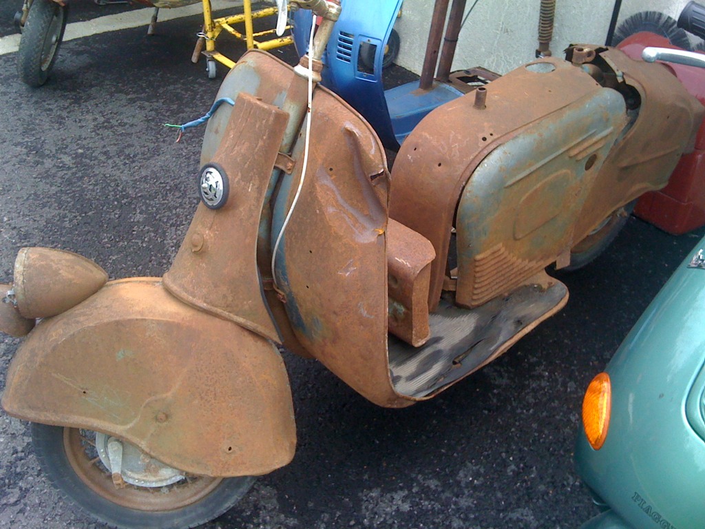 Modell: 75R Herstellerland: Österreich Baujahr: 1954/1955 Hubraum: 75 ccm Bereifung: 3.00-12 Farbe: rostbraun.......ehemals hellblau-metallic