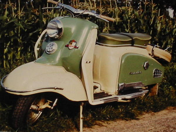 mit den ebenfalls in Nürnberg ansässigen Triumph-Werken entstand der starke Tourenroller R 200. Er blieb bis Ende 1960 in Produktion. In jenem Jahr stand bereits der hier abgebildete kleinere Hercules 50 in den Startlöchern. Man hatte ihn als Leichtroller der 50-ccm-Klasse konzipiert, was ihn für Inhaber des Führerscheins der alten Klasse IV besonders interessant machte. Der hübsche Scooter (baugleich mit dem KTM Ponny II und dem Rabeneick-Roller), der mit seiner eleganten Verkleidung wie ein großer Roller aussah, wurde von einem 4,3 PS starken Einzylinder-Zweitakt-Motor aus dem Hause Fichtel & Sachs auf Trab gebracht. Hercules nahm das 70 km/h flotte Gefährt 1964 aus der Produktion. PS: Im Prototyp des R200 war noch ein 175 ccm ILO Motor verbaut.